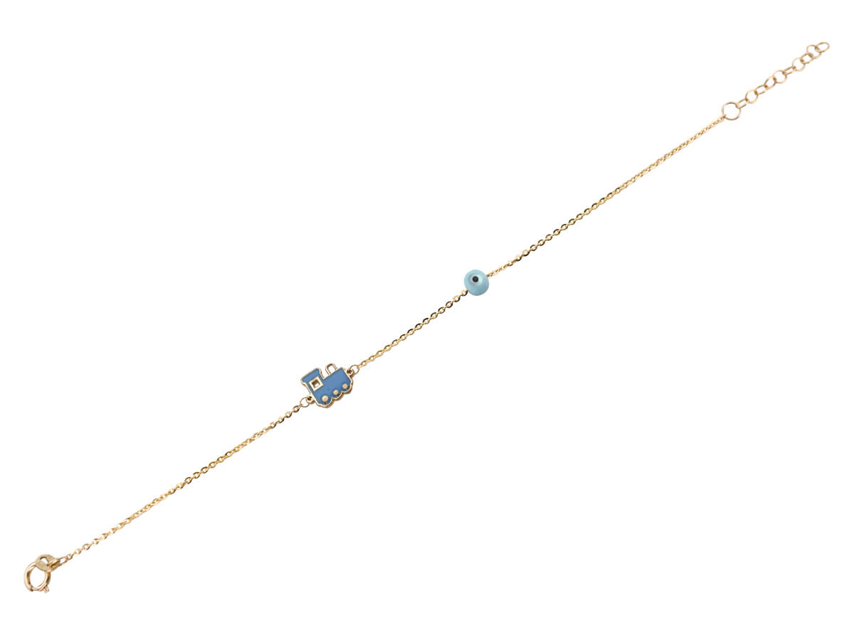 Χρυσό Παιδικό Βραχιόλι Με Τρενάκι Και Ματάκι 9 Καράτια (κωδ: GB078)